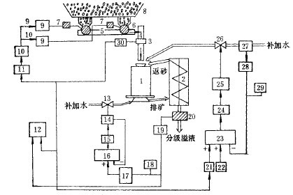 圖1為三個(gè)控制環(huán)節(jié)的磨礦自動(dòng)控制系統(tǒng)實(shí)例,這三個(gè)環(huán)節(jié)是: