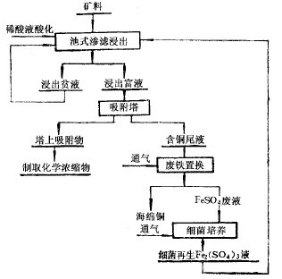 幾年來的生產實踐證明,硫酸-細菌浸出貧礦石的工藝,可以綜合浸出礦石中的銅和稀有金屬,回收率較高、操作簡便、設備少、成本低,是一個變廢為寶、化害為利、綜合利用礦產資源的有效途徑。